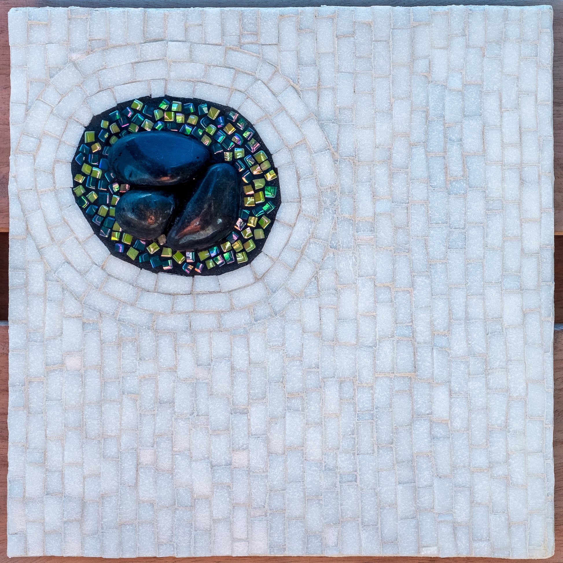 12 x 12 inch mosaic interpretation of the Ryōan-ji rock garden in Kyoto, Japan. Suited for indoor only.
